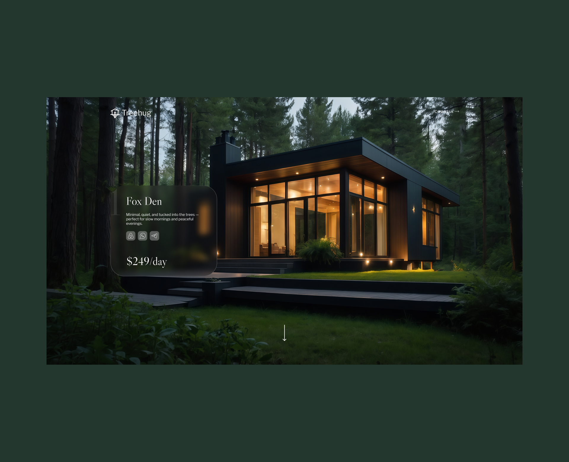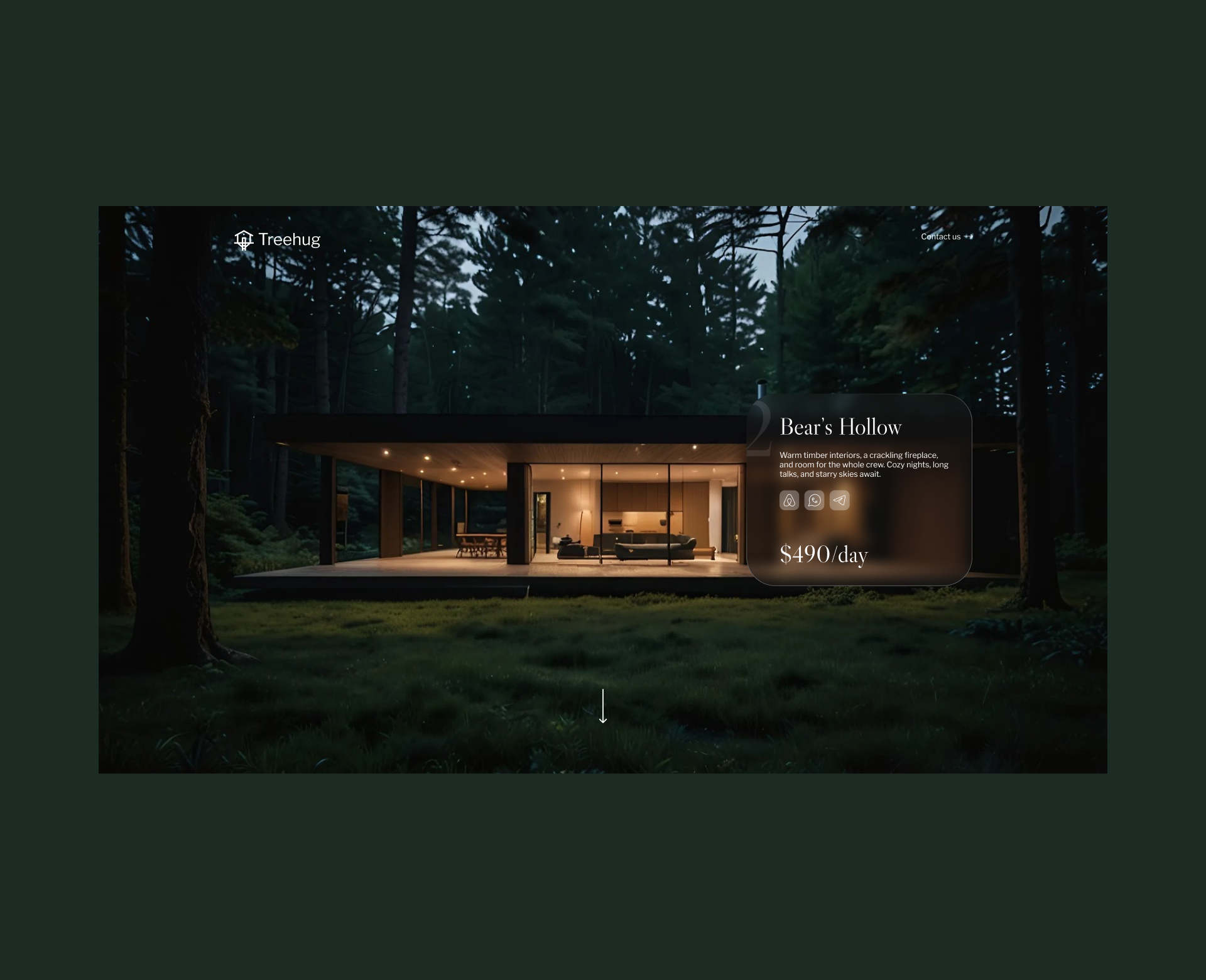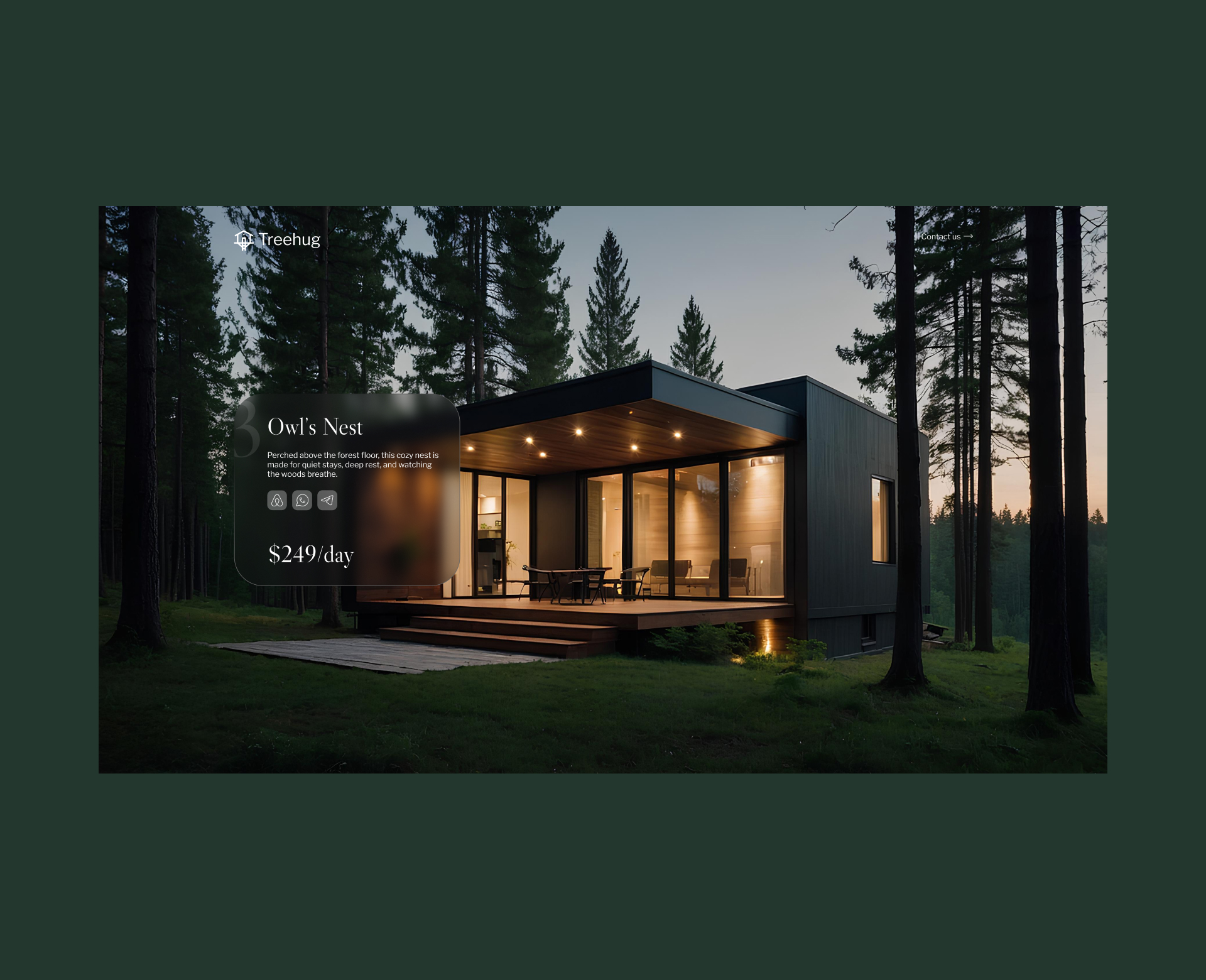 Treehug offers three modern cabins nestled in the forest for a tranquil getaway. We designed a minimalist brand and website that reflect the calm, nature-inspired vibe. The site guides users smoothly to book via Airbnb, WhatsApp or Telegram.